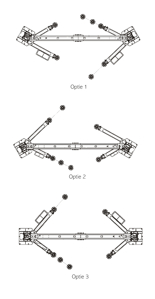 Die Hebebühne hat doppelteleskopische Tragarmen mit einer Unterfahrhöhe von nur 11 cm. Es ist möglich, direkt abzusenken, ohne dass die Hebebühne zuerst ansteigt.
